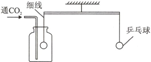 5. 如图,杠杆已调至平衡,向集气瓶内缓慢通入一定量的CO₂气体,稍后再倒入浓NaOH溶液(液面不接触乒乓球)。下列说法正确的是( )。