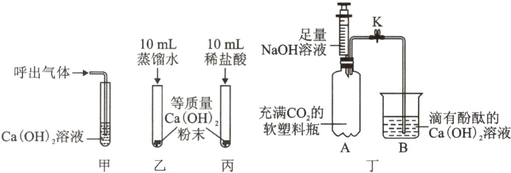 (2) 甲中Ca(OH)₂溶液变浑浊,证明呼出气体中含有______。