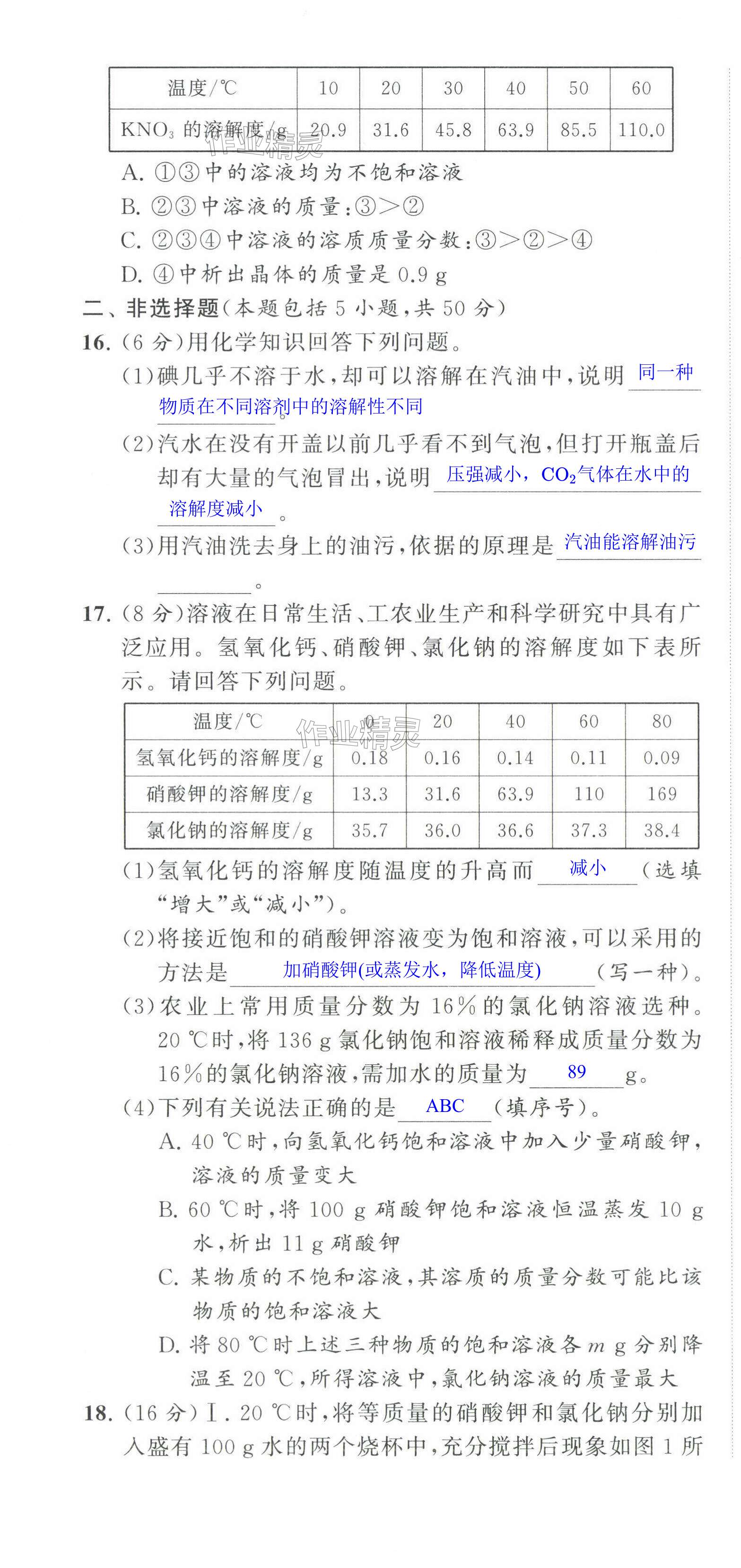 注:目前有些书本章节名称可能整理的还不是很完善,但都是按照顺序排列的,请同学们按照顺序仔细查找。练习册 2025年课时提优计划作业本九年级化学下册人教版 答案主要是用来给同学们做完题方便对答案用的,请勿直接抄袭。