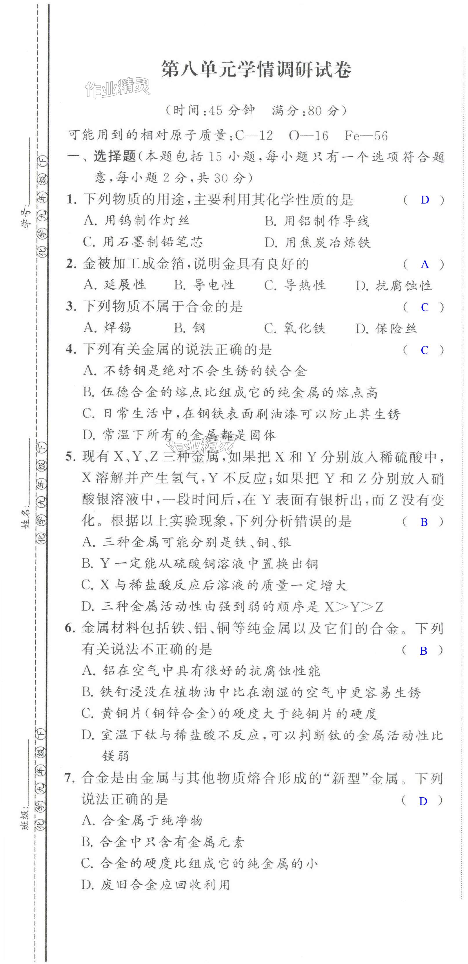 注:目前有些书本章节名称可能整理的还不是很完善,但都是按照顺序排列的,请同学们按照顺序仔细查找。练习册 2025年课时提优计划作业本九年级化学下册人教版 答案主要是用来给同学们做完题方便对答案用的,请勿直接抄袭。
