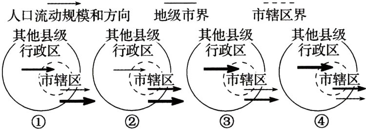 (1)下图示意四种人口流动情况,与该市2010—2020年情况相符的是( )