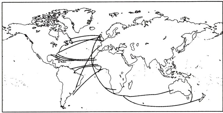 (1)绘一绘:在图中曲线上添加箭头,正确表达15—19世纪国际人口迁移的方向。