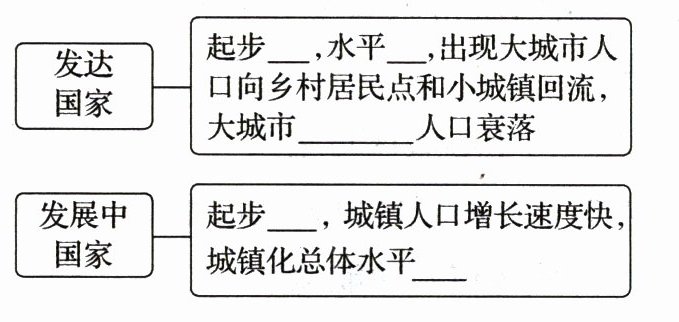 (2)城镇化与工业化:一个国家和地区城镇化的水平,体现其工业化程度和______________发展水平。
