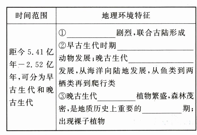 (2)地壳运动 海洋无脊椎 脊椎动物 蕨类 成煤
