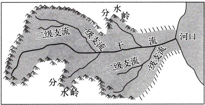(2) 流域:由________________所包围的河流或水系的集水区域。