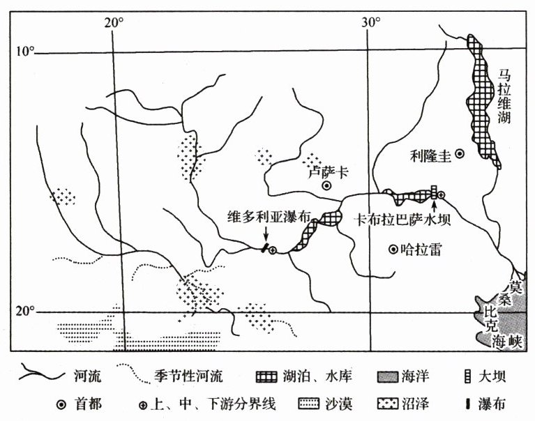 2. 赞比西河干流上现有4座大水电站,有关卡布拉巴萨水坝工程利弊的叙述,正确的是( )