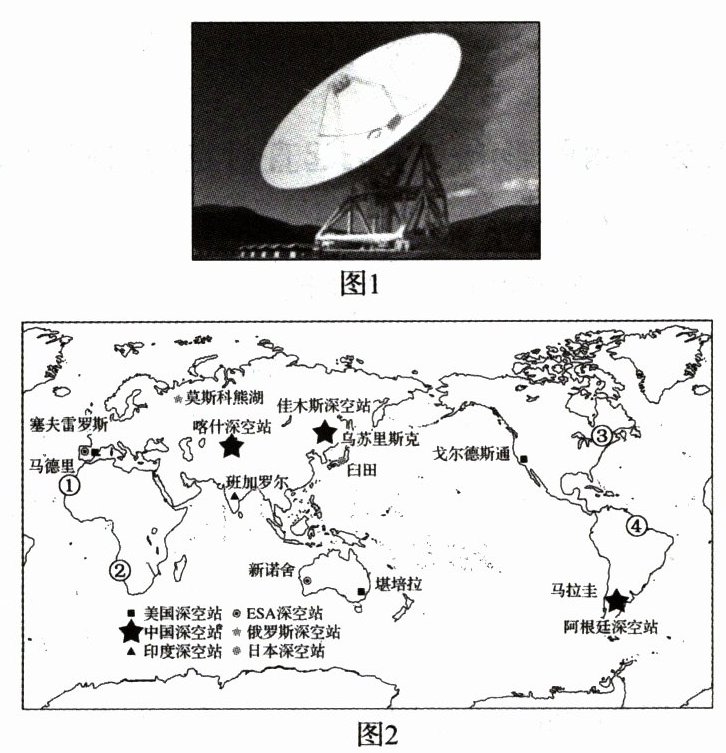 (3)为进一步优化我国深空站的全球布局,图2中①~④可选为站址的是( )