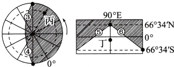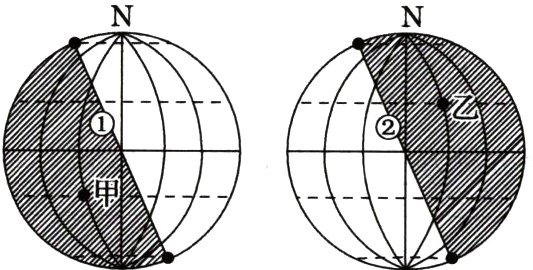 下列各图中的斜线部分代表黑夜。据此完成1~3题。
