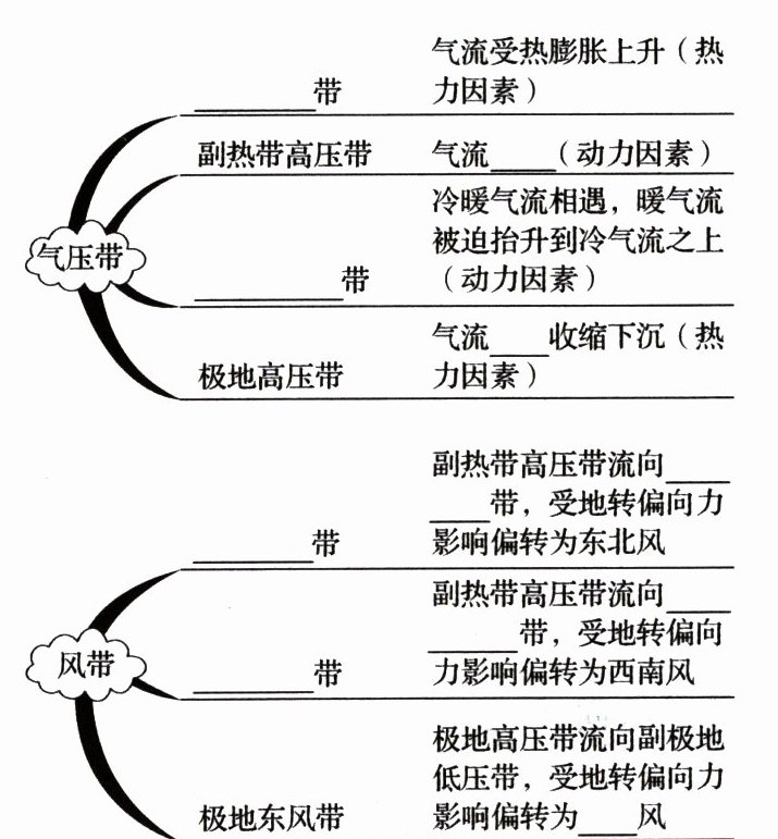 (2)赤道低压 下沉 副极地低压 受冷 东北信风 赤道低压 盛行西风 副极地低压 东北