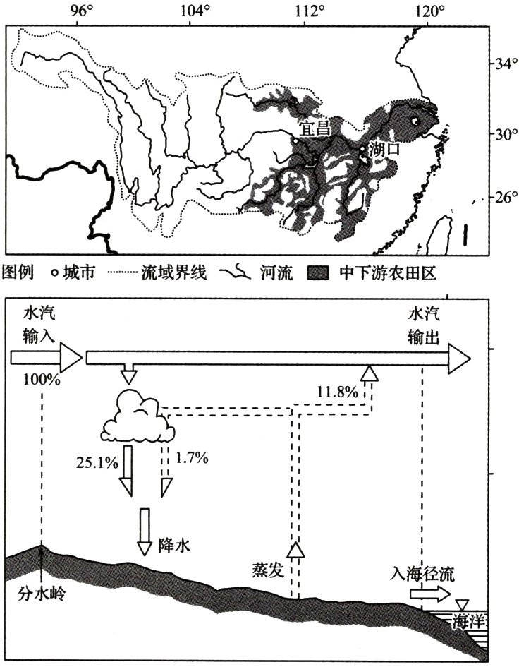 材料二 下图为长江流域水循环简图及长江流域示意图。
