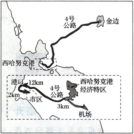 柬埔寨西哈努克港经济特区由我国和柬埔寨两国共同建设。下图为西哈努克港经济特区地理位置。读图,回答下列问题。