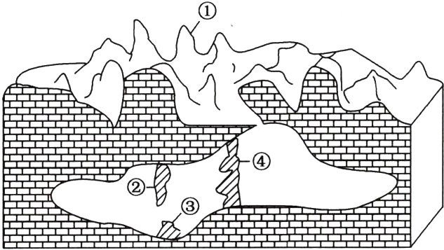 (2)①峰林,②石钟乳,③石笋,④石柱。