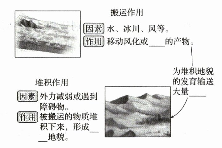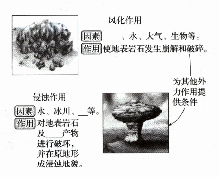 2.温度 风 风化 侵蚀 物质堆积