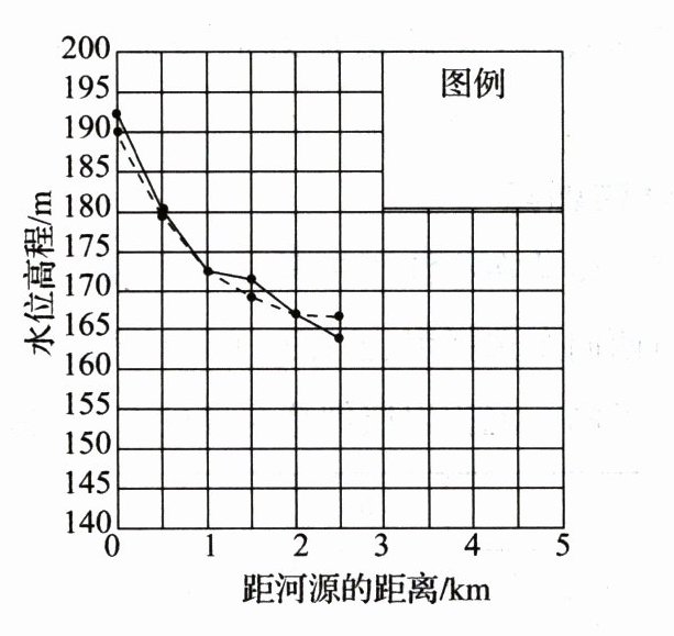 (1)请补充两条河流河源段的水位高程变化曲线和图例。