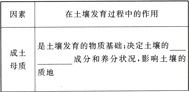 (1)土壤概念:指陆地表层具有一定肥力,能够______________的疏松表层,由________________、有机质、水分和空气四种物质组成。