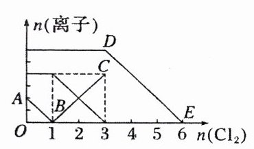 4. 向含有$Fe^{2 + }$、$I^{-}$、$Br^{-}$的溶液中通入适量氯气, 溶液中各种离子的物质的量变化如图所示。下列有关说法不正确的是 ( )
