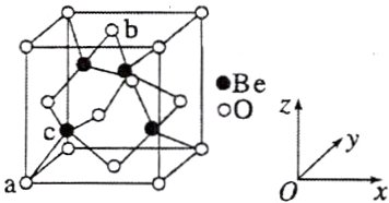 D.设O与Be的最近距离为n pm,用Nₐ表示阿伏加德罗常数的值,则BeO晶体的密度为$\frac{4×(9 + 16)}{N_{A}(\frac{4\sqrt{3}}{3}n)^{3}×10^{-30}}$ g·cm⁻³