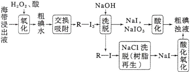 5. 离子交换法从海带中提取碘是一种较为先进的制碘工艺。如图是使用离子交换树脂的“离子交换法”从海带中提取碘的主要流程。