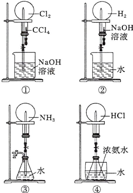 (2)①玻璃管中有空气,氨与水不接触,不能被水吸收,烧瓶内压强不减小,故不能产生倒吸现象