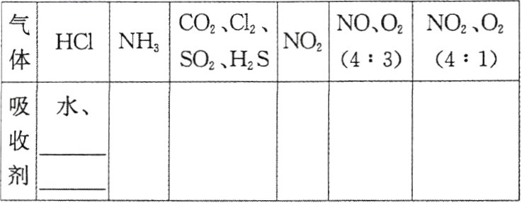 (3)指出下面几种常见的能形成喷泉的气体的吸收剂。