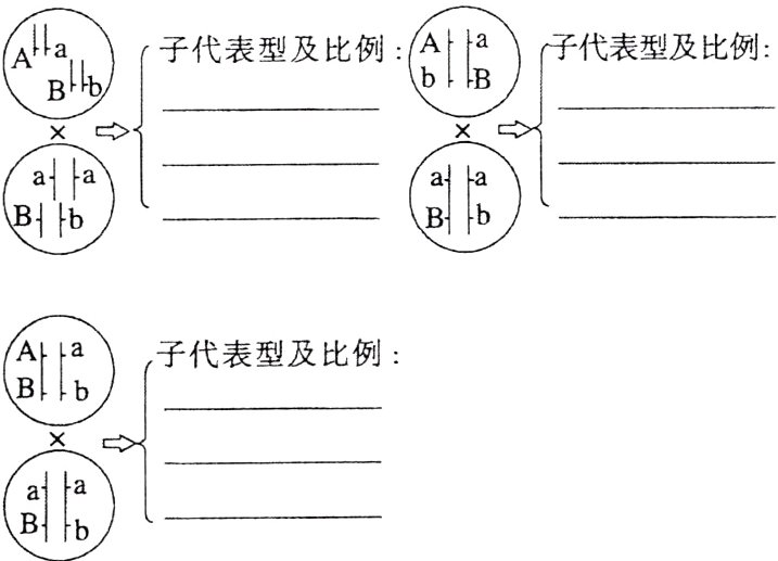 (3)题图三种结果依次为缺刻叶红果 : 马铃薯叶红果 : 缺刻叶黄果 : 马铃薯叶黄果 = 3 : 3 : 1 : 1;缺刻叶红果 : 马铃薯叶红果 : 缺刻叶黄果 = 1 : 2 : 1;缺刻叶红果 : 马铃薯叶红果 : 马铃薯叶黄果 = 2 : 1 : 1。