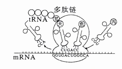 (7)× [图示为细胞通过翻译形成蛋白质的过程,根据tRNA进出核糖体情况确定核糖体的移动方向是从左向右。又因为密码子具有简并性,丙氨酸还能由别的tRNA转运。]