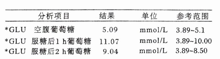 妊娠期母体对葡萄糖需求量增加,为保证血糖供应,机体会做出调整使胰岛素效果减弱;而孕妇妊娠期往往摄入过量糖类,营养过剩,运动量又较低,易诱发妊娠期糖尿病。如表为口服75 g葡萄糖后血检结果。