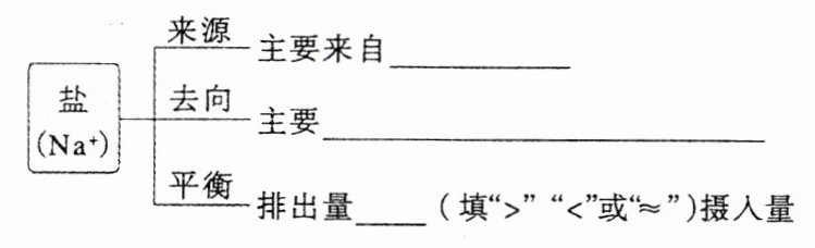 (5)不能。机体是靠感受细胞外液渗透压的变化进行调节的,而不是直接感受水盐含量的变化。