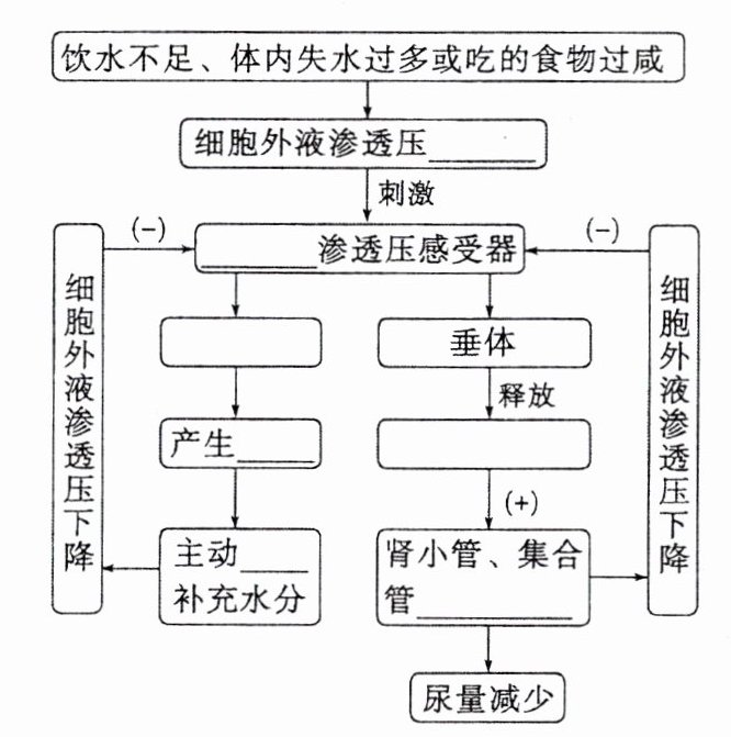 (3)尿崩症患者虽然尿的排出量增多了,但还是感觉口渴,原因是什么?