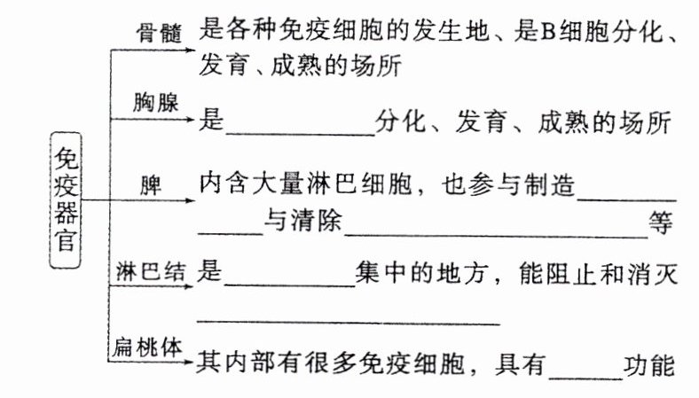 (1)①淋巴组织 ②T细胞 新的血细胞 衰老的血细胞 淋巴细胞 侵入体内的微生物 防御