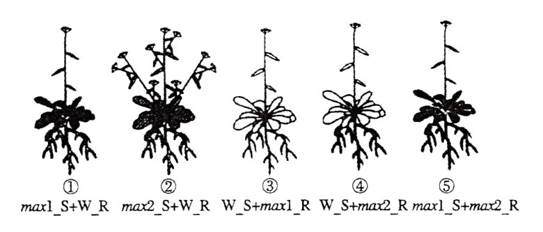 6.A [对野生型W和③④的生长情况进行分析,W可以产生SL,且W和③④地上部分都表现出了顶端优势,说明SL可以在产生部位(地上部位)发挥调控作用,A错误;max1没有表现出顶端优势,但当其他上部和W植株的根进行嫁接后(①),就表现出了顶端优势,说明其自身不能产生SL,由于野生型产生的SL从根运输至地上部分,所以max1接受了SL,表现出顶端优势,因此对SL敏感,B正确;max2的地上部分和野生型的根进行嫁接后,没有恢复顶端优势,说明max2对SL不敏感,从⑤中(max1不能产生SL,但当其与max2的根进行嫁接后,表现出了顶端优势)可以看出,max2的根产生了SL,运输至地上部分,使地上部分表现出顶端优势,C正确;当max2的地上部分和max1的根进行嫁接后,由于max2对SL不敏感,因此不会表现出顶端优势,即表现为顶端优势缺失,D正确。]