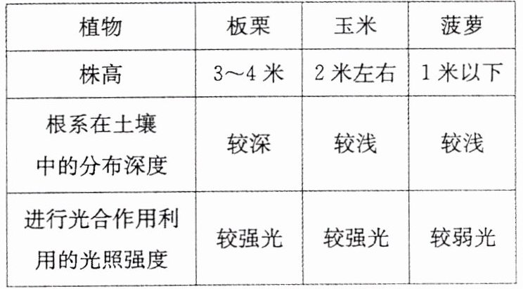 材料二 依据植物的株高、根系在土壤中分布的深度以及对光照强度的需求等特性,将不同植物合理搭配在一起,可在有限的空间里实现立体种植,获得较高的经济效益和生态效益。某林场据此进行了实践,在桉树林地中搭配种植了另一种植物。桉树是一种深根性的植物,幼桉树一般高度在2米左右,其生长需要较强的光照。
