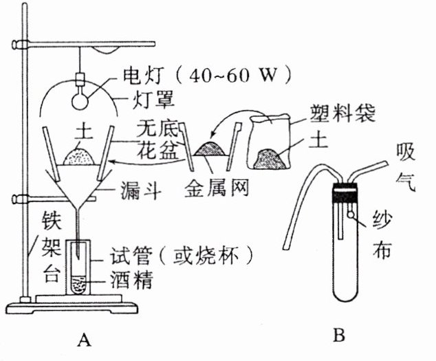 (2)______________(图B):该装置中纱布的作用是________将土壤小动物吸走。