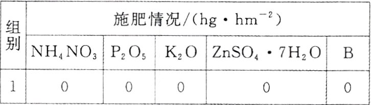 14.为探究稻田中施加硼(B)、锌(Zn)肥对水稻增产的作用,研究人员在某稻田中进行实验,分组及施肥情况如表所示。下列分析不正确的是 ( )