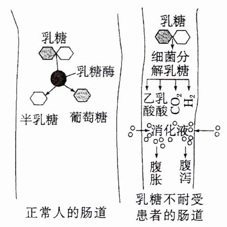 B.乳糖不耐受症的形成原因是患者体内没有分解乳糖的乳糖酶