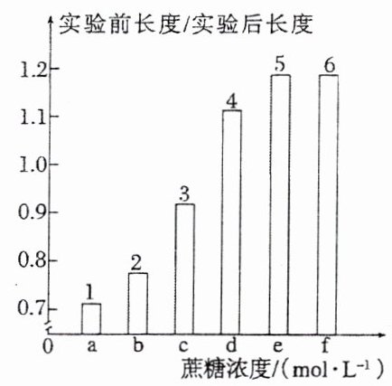 12.(2023·福州高三联考)将某植物花冠切成大小和形状相同的细条,均分为6组并标上数字序号,取上述6组细条分别置于不同浓度的蔗糖溶液中浸泡相同时间后,测量各组花冠细条的长度,结果如图所示。假如蔗糖溶液与花冠细胞间只有水分交换,下列叙述不正确的是( )