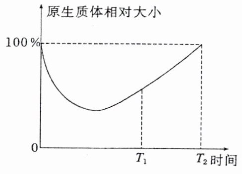 D.乙同学在T₂时观察不到质壁分离现象,此时细胞液浓度不一定等于外界溶液浓度