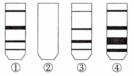 D [根据实验1、2、3三组数据可求出,色素3平均移动距离为(1.9 + 1.5 + 1.4)÷3 = 1.6(cm),溶剂平均移动距离为8.0 cm,所以Rf值为1.6÷8.0 = 0.2,根据Rf的大小可知,色素3是叶绿素a,其化学元素组成有镁,若植物体缺镁,该色素含量会减少,A错误;根据Rf的大小可知,色素1移动距离最远,扩散速度最快,在层析液中溶解度最大,B错误;根据Rf的大小可知,色素1是胡萝卜素,色素2是叶黄素,色素3是叶绿素a,色素4是叶绿素b,叶绿素(色素3、4)主要吸收红光和蓝紫光,类胡萝卜素(色素1、2)主要吸收蓝紫光,C错误。]
