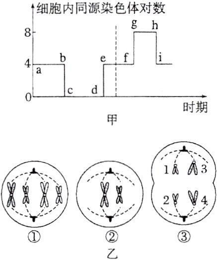 B.图乙细胞③中1号和2号染色体相同位置上的基因属于等位基因