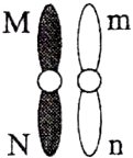 1. 某二倍体高等动物的一个卵原细胞中,两对等位基因位于一对同源染色体上(如图)。若在减数分裂过程中,这对染色体的非姐妹染色单体仅在某个位点发生一次互换(不考虑发生突变),形成的次级卵母细胞分裂得到一个基因型为mn的卵细胞和一个极体,则该极体的基因型不可能是( )