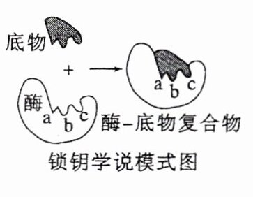 a.锁钥学说:整个酶分子的天然构象具有刚性结构,酶表面具有特定的形状,酶与底物的关系就像锁和钥匙。
