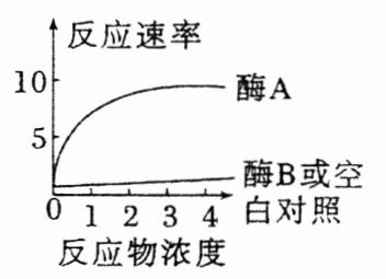 加入酶B的反应速率与空白对照条件下的反应速率相同,而加入酶A的反应速率随反应物浓度增大明显加快,说明酶B对此反应无催化作用,进而说明酶具有专一性。