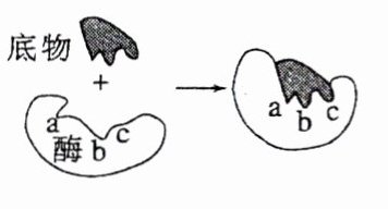 b.诱导契合学说:酶表面没有一种与底物互补的固定形状,而只是由于底物的诱导才形成了互补形状,从而有利于底物的结合。