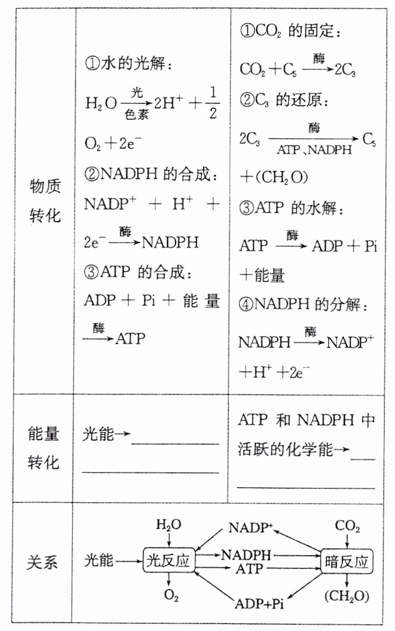 (2)× [暗反应中,CO₂不能直接被NADPH还原,必须经过CO₂的固定形成C₃,再在有关酶的催化作用下,C₃接受ATP和NADPH释放的能量,并且被NADPH还原。]