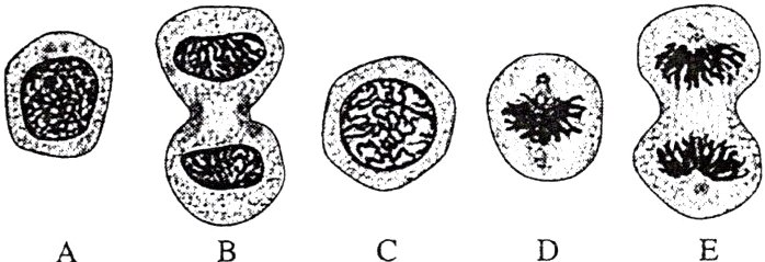 1. 研究人员在实验中观察到下列处于有丝分裂的细胞,它们在一个细胞周期中正确的排序为______(用字母和箭头表示)。