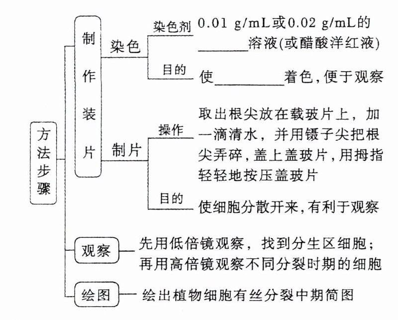 (2)× [制作装片的过程是解离→漂洗→染色→制片。]