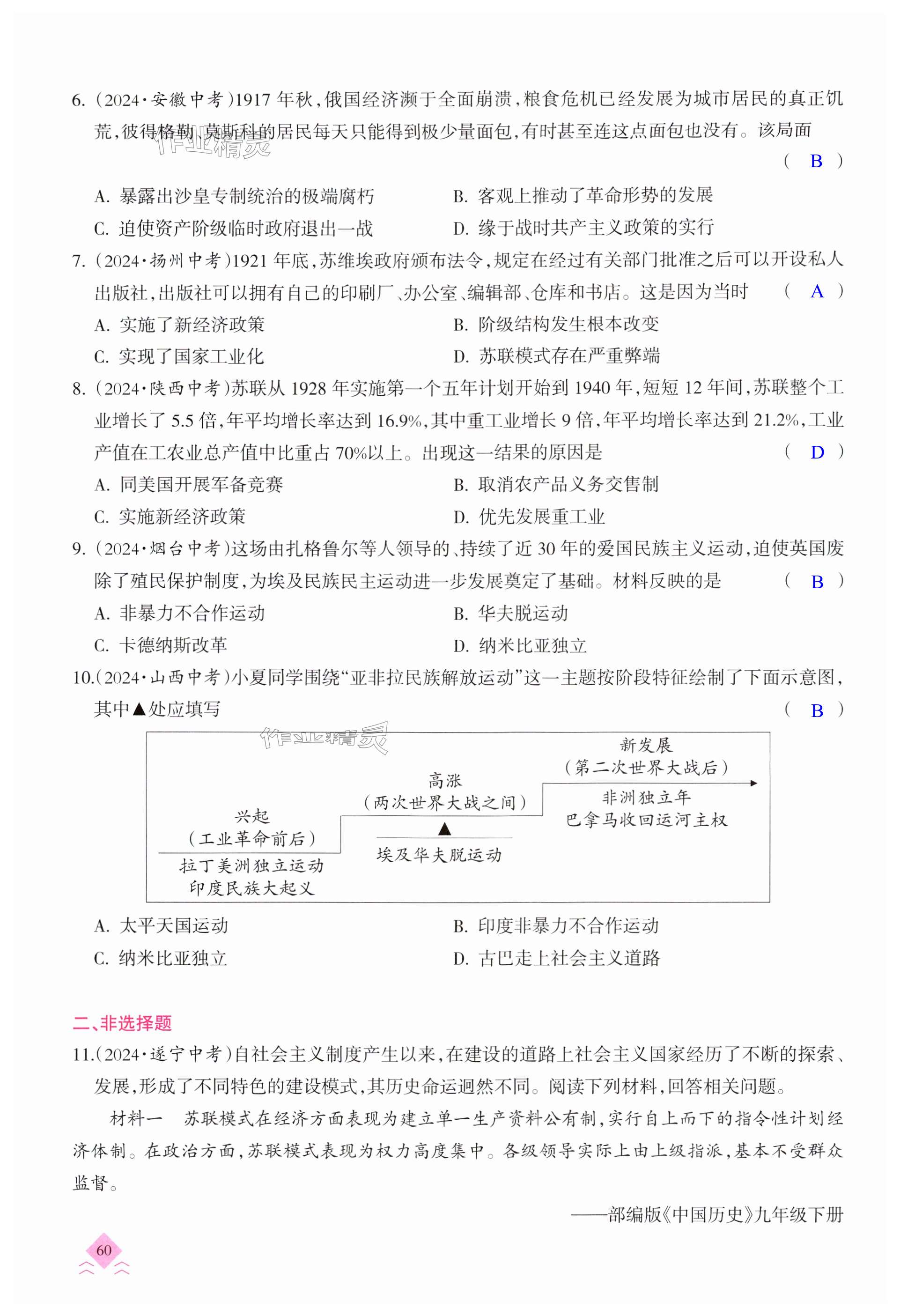 注:目前有些书本章节名称可能整理的还不是很完善,但都是按照顺序排列的,请同学们按照顺序仔细查找。练习册 2025年快乐导练九年级历史下册人教版 答案主要是用来给同学们做完题方便对答案用的,请勿直接抄袭。