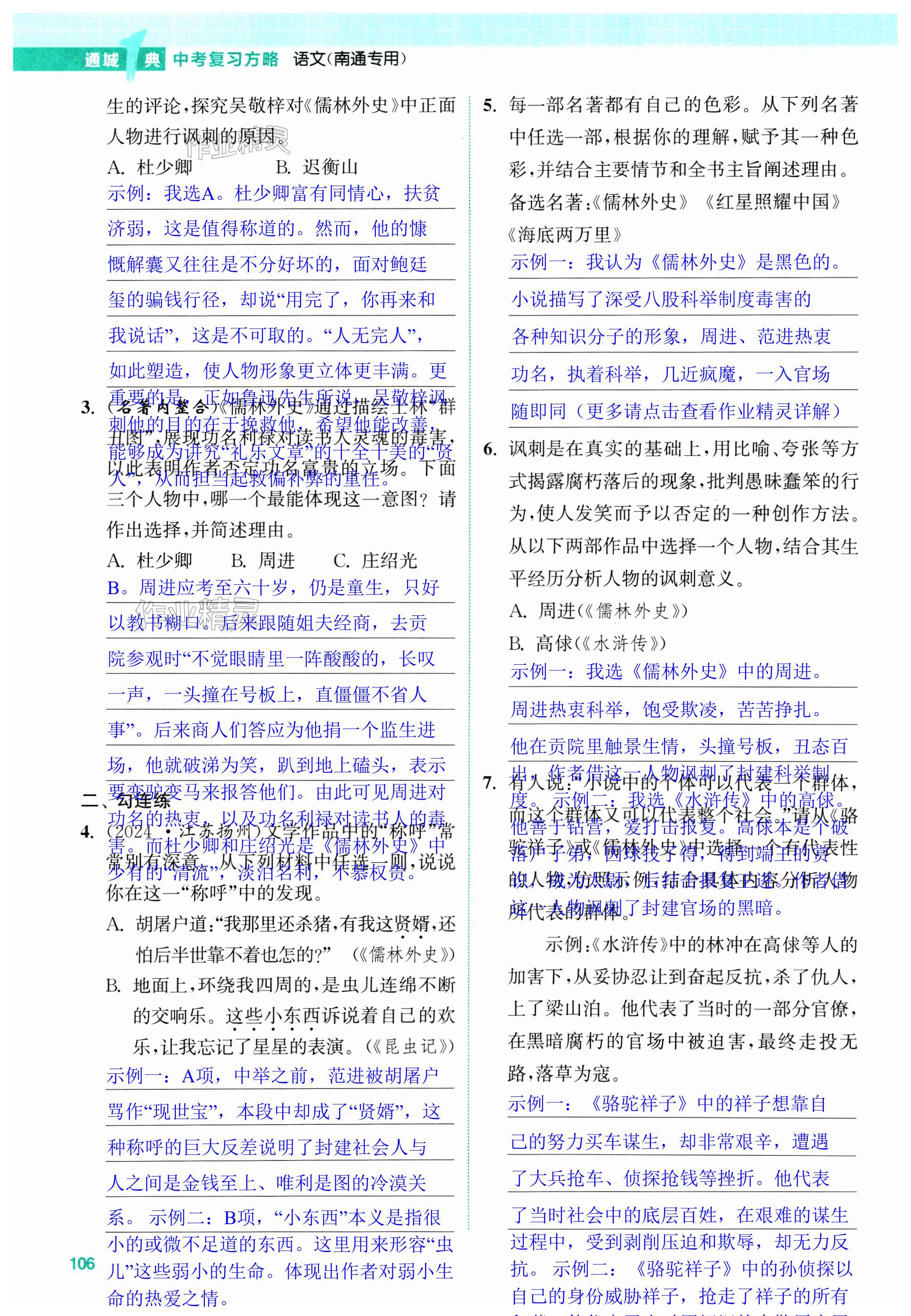 注:目前有些书本章节名称可能整理的还不是很完善,但都是按照顺序排列的,请同学们按照顺序仔细查找。练习册 2025年通城学典通城1典中考复习方略语文南通专用 答案主要是用来给同学们做完题方便对答案用的,请勿直接抄袭。