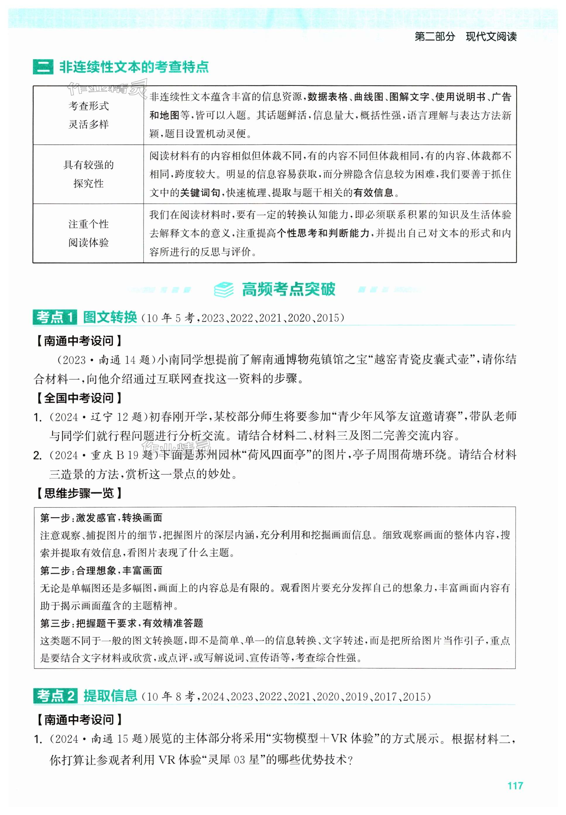 注:目前有些书本章节名称可能整理的还不是很完善,但都是按照顺序排列的,请同学们按照顺序仔细查找。练习册 2025年通城学典通城1典中考复习方略语文南通专用 答案主要是用来给同学们做完题方便对答案用的,请勿直接抄袭。
