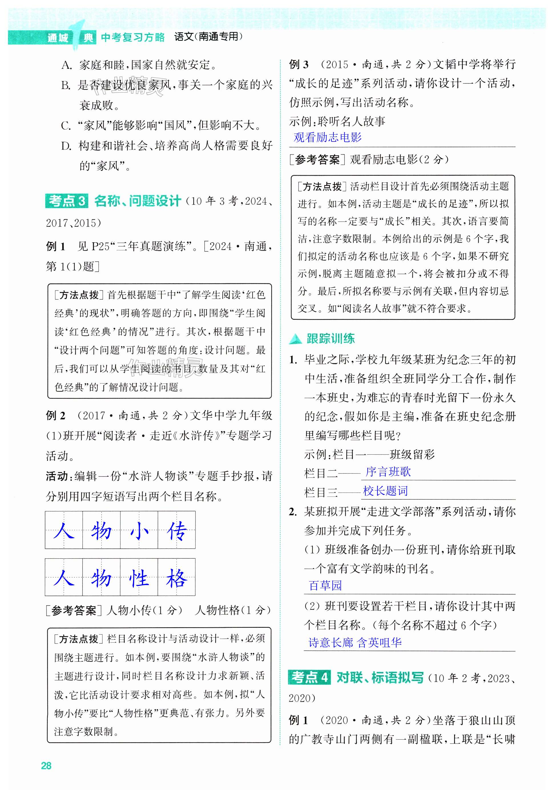 注:目前有些书本章节名称可能整理的还不是很完善,但都是按照顺序排列的,请同学们按照顺序仔细查找。练习册 2025年通城学典通城1典中考复习方略语文南通专用 答案主要是用来给同学们做完题方便对答案用的,请勿直接抄袭。
